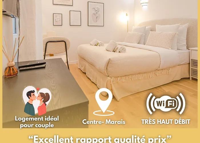 The 1-room Charming studio in the Marais Hotel Paris lies 2.7 km from Musee d'Orsay Art Museum and at a distance of 250 metres from Sully-Morland tube station.